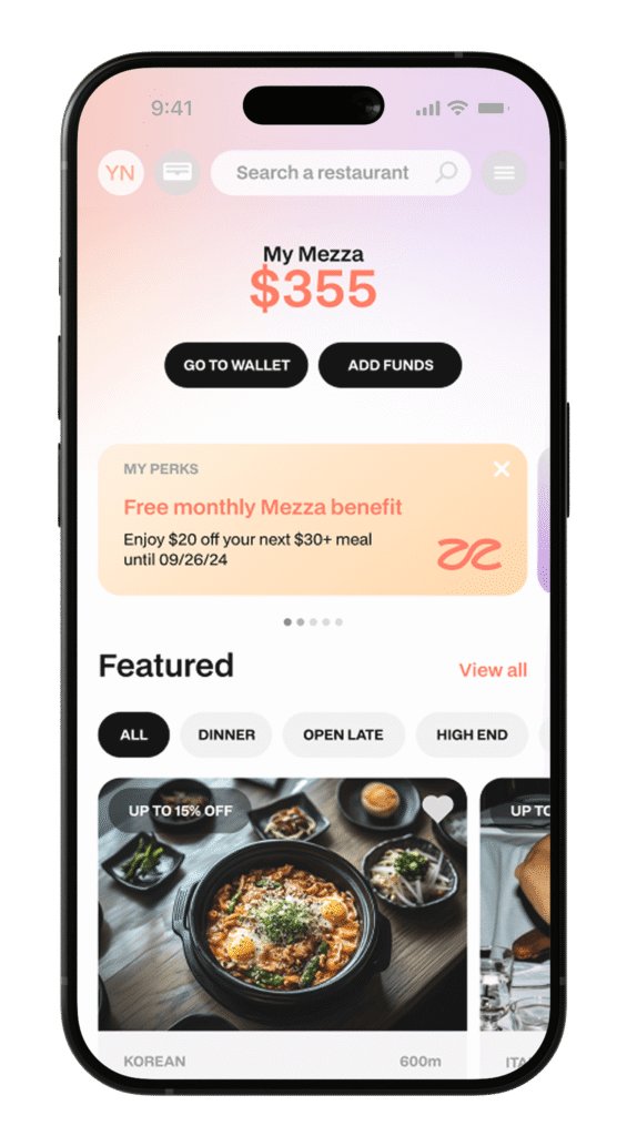 PARTNER WITH US Your restaurant funding, fixed. Interest-free, debt-free capital: we’ve got you Your restaurant funding, fixed. Interest-free, debt-free capital: we’ve got you Get the funds you need to grow your business and reach a whole new,premium and loyal clientele Get the funds you need to grow your business and reach a whole new, premium and loyal clientele Get in touch Get in touch “One of the most significant challenges is securing adequate financing to start, operate or expand a restaurant successfully.” “One of the most significant challenges is securing adequate financing to start, operate or expand a restaurant successfully.” The Restaurant Owner, US 2024 How it works SECURE FUNDS FOR YOUR RESTAURANT You secure capital without equity or debt Mezza supports your restaurant by exchanging funding for F&B credits GET IN TOUCH CREDIT DISTRIBUTION We distribute credit to our Mezza community Mezza sells the F&B credits to their community of users through the Mezza App. Customers are incentivized to spend more with a credit bonus GET IN TOUCH CONNECT WITH MEZZA USERS You get new and loyal customers Mezza sends new customers to your establishment. They get to know your restaurant and come back more frequently using Mezza deals GET IN TOUCH How it works SECURE FUNDS FOR YOUR RESTAURANT You secure capital without equity or debt Mezza supports your restaurant by exchangingfunding for F&B credits. No dilution, no loan, no fees. Get in touch CREDIT DISTRIBUTION We distribute credit to our Mezza community Mezza sells the F&B credits to their community of users through the Mezza App. Customers are incentivized to spend more with a credit bonus Get in touch CONNECT WITH MEZZA USERS You get new & loyal customers Mezza sends new customers to your establishment. They get to know your restaurant and come back more frequently using Mezza deals Get in touch A new paradigm Food & Beverage Credits Our financing is backed by diningexperiences, not debt Non-Dilutive Capital Owners maintain 100% of their business equity Aligned Incentives We succeed when restaurants thrive, creating true partnership A NEW PARADIGM Food & BeverageCredits Our financing is backed by diningexperiences, not debt Non-Dilutive Capital Owners maintain 100% of their business equity Aligned Incentives We succeed when restaurants thrive, creating true partnership A WIN-WIN Capital Without Sacrifice Get funding without giving up ownership or taking on traditional debt obligations Marketing Boost Gain exposure through the Mezza platform and bring in new loyal customers Customer Loyalty Build repeat business through credit holders who become regular patrons WE’RE CONNECTED TO YOUR POS WE’RE CONNECTED TO YOUR POS Capital WithoutSacrifice Get funding without giving upownership or taking on traditionaldebt obligations Marketing Boost Gain exposure through theMezza platform and bring in newloyal customers Customer Loyalty Build repeat business throughcredit holders who becomeregular patrons WE’RE CONNECTED TO YOUR POS Want to get started now or schedule a coffee with us? Want to get started now or schedule a coffee with us? We’re always in! Your form hasbeen submitted! Thank you for your interest in Mezza, we’ll be in touch very shortly! Got it