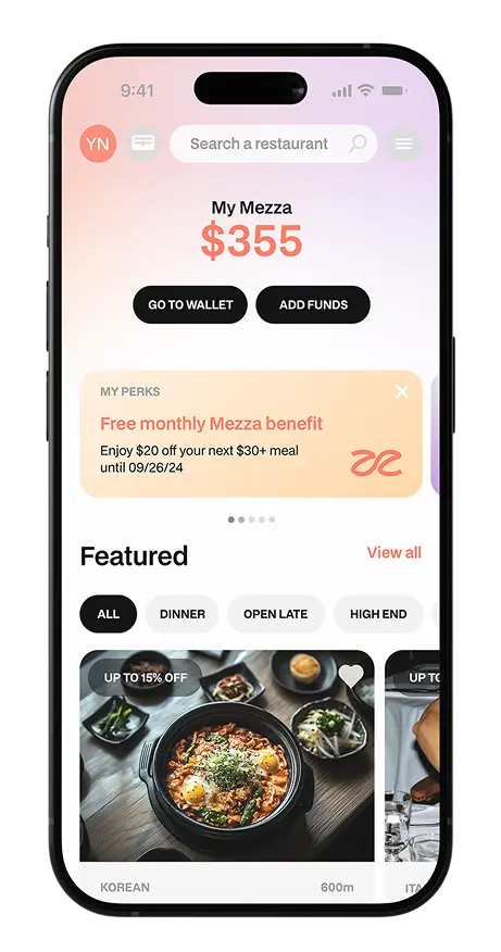 Members dine as normal and pay via their Mezza digital wallet as easily as a card – bringing increased spending power and higher average checks to every table.