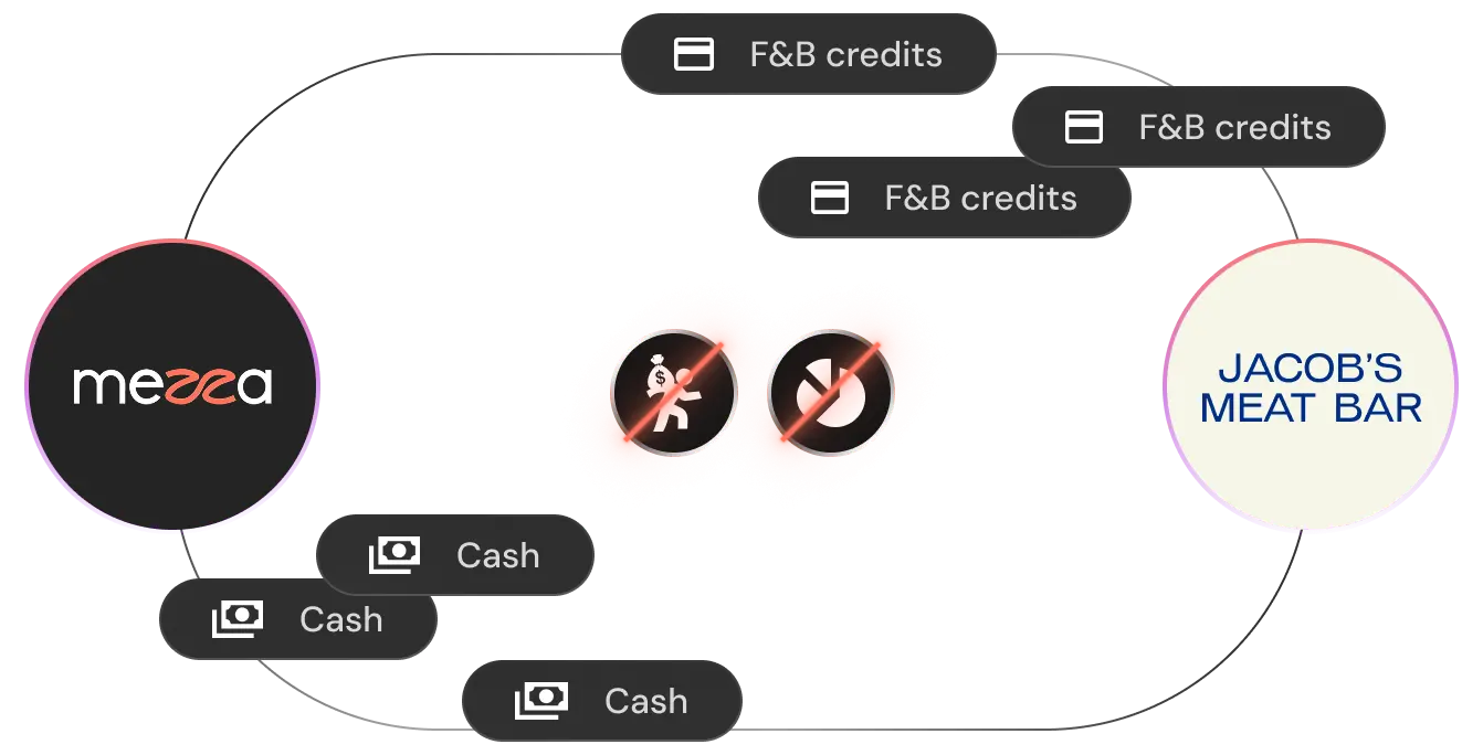 Mezza supports your restaurant by exchanging funding with F&B credits. No dilution, no loan, no fees.