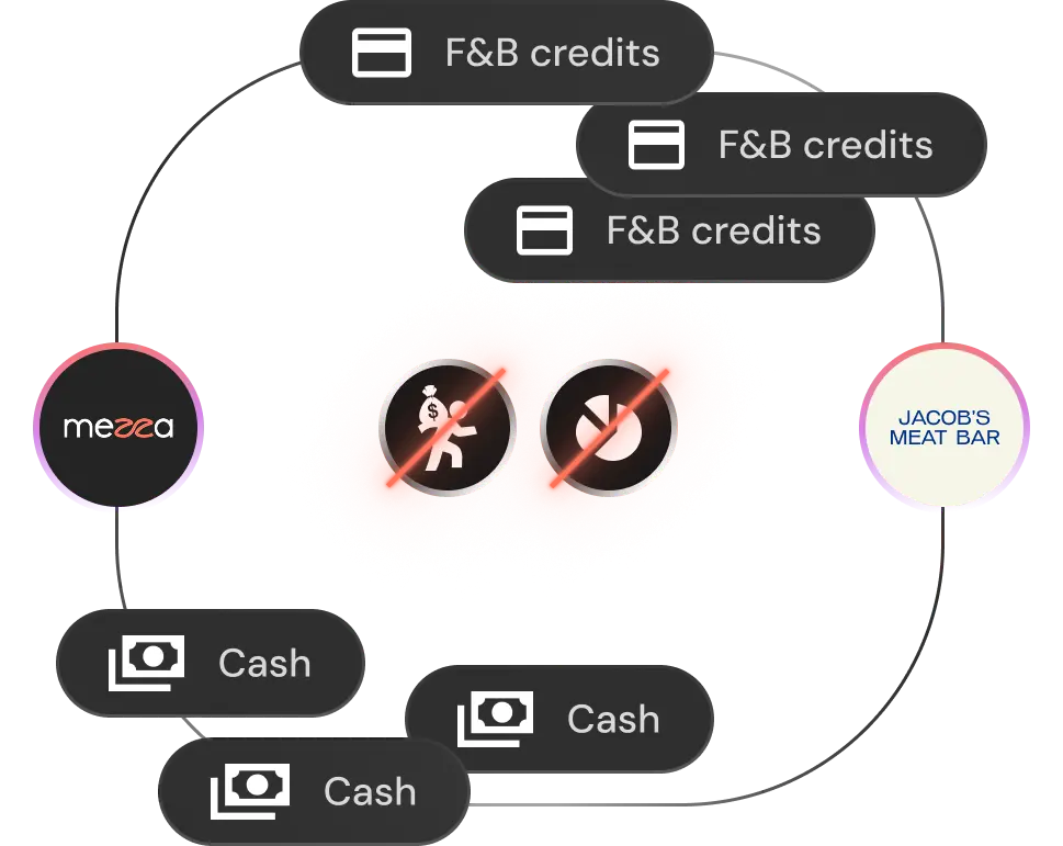 We inject immediate cash flow by pre-purchasing F&B credit in bulk.